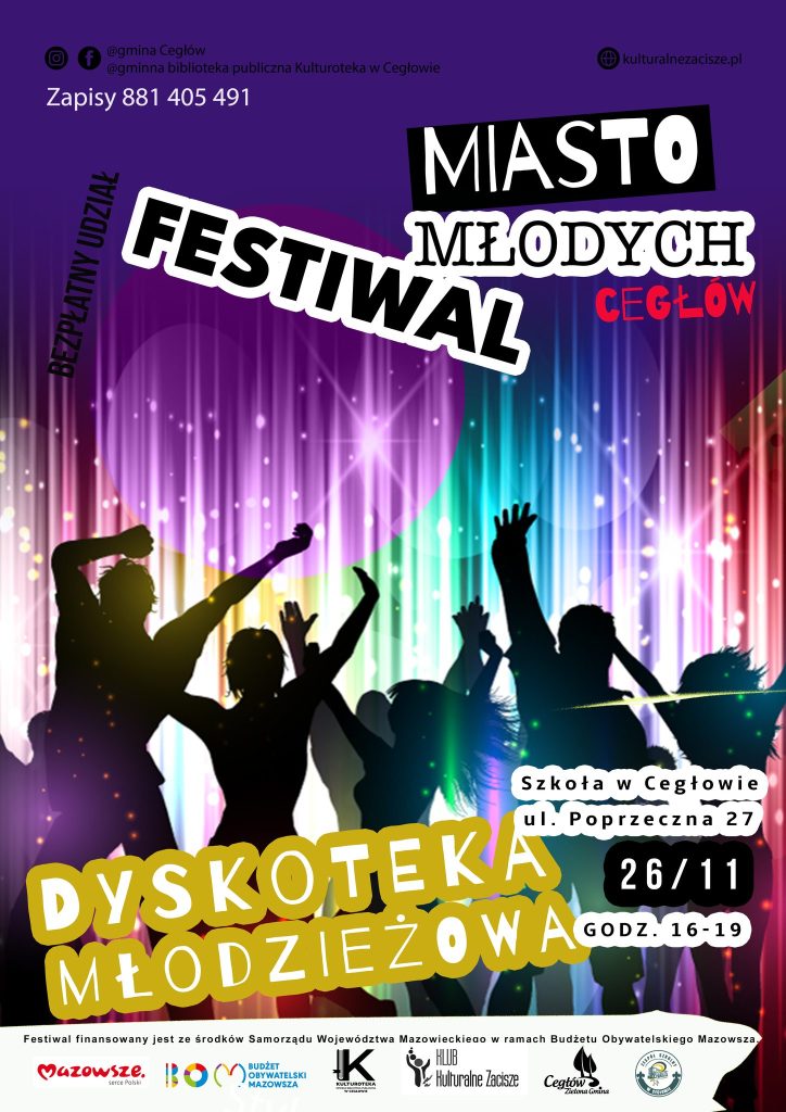 26 listopada w ramach Festiwalu Miasto Młodych odbędzie się młodzieżowa dyskoteka. Wydarzenie zaplanowano w Szkole Podstawowej w Cegłowie (Zespół Szkolny w Cegłowie). To doskonała okazja do wspólnej zabawy i tanecznych spotkań w gronie rówieśników.