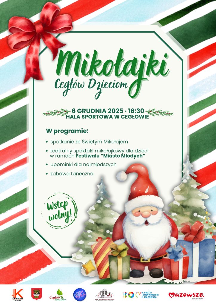 6 grudnia zapraszamy wszystkie dzieci wraz z rodzinami na wydarzenie pełne radości, uśmiechu i świątecznej atmosfery – Mikołajki Cegłów Dzieciom. W tym roku spotykamy się wyjątkowo na Hali Widowiskowo – Sportowej w Cegłowie, gdzie od godziny 16:30 czekać będzie wiele atrakcji przygotowanych z myślą o najmłodszych.