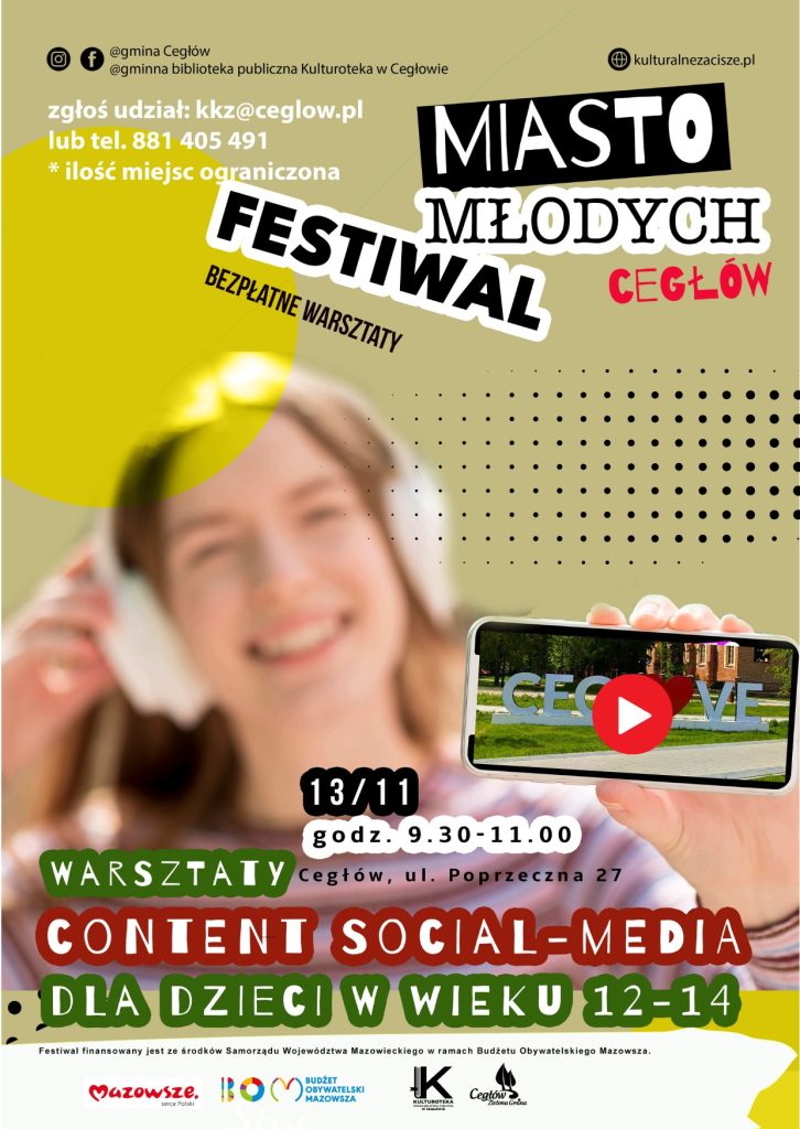 13 listopada w ramach Festiwalu Miasto Młodych odbędą się warsztaty poświęcone tworzeniu treści do mediów społecznościowych. Uczestnicy będą nagrywać i montować filmy przy użyciu własnych telefonów, tworząc lokalną, filmową promocję.